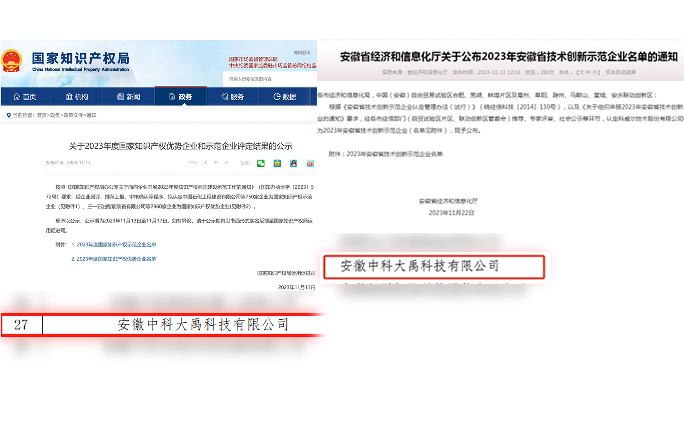 評定為2023年度國家知識產(chǎn)權優(yōu)勢企業(yè) 入選2023年安徽省技術創(chuàng)新示范企業(yè)名單